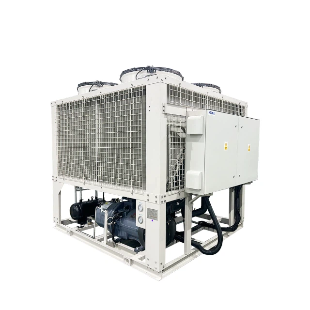 Máy làm lạnh (chiller) trục vít giải nhiệt gió là một loại hệ thống làm mát công nghiệp sử dụng máy nén trục vít và dàn ngưng tụ giải nhiệt bằng gió để loại bỏ nhiệt khỏi chất lỏng, thường là nước hoặc hỗn hợp nước-glycol.